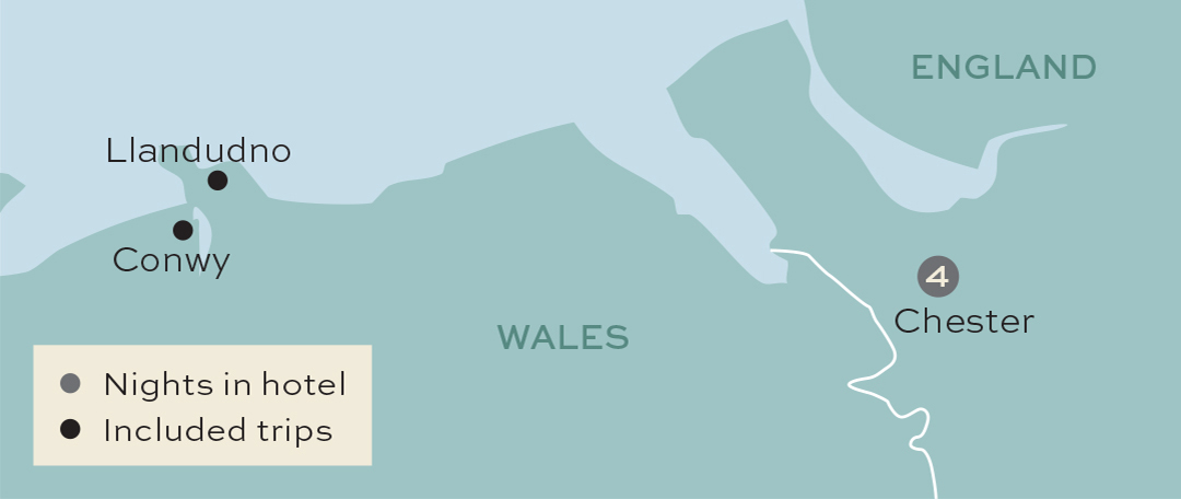 The sights of historic Chester and the lovely seaside town of Llandudno in North Wales top and tail your Christmas celebrations, with an insightful walking tour and Welsh adventure in between all the festivities.