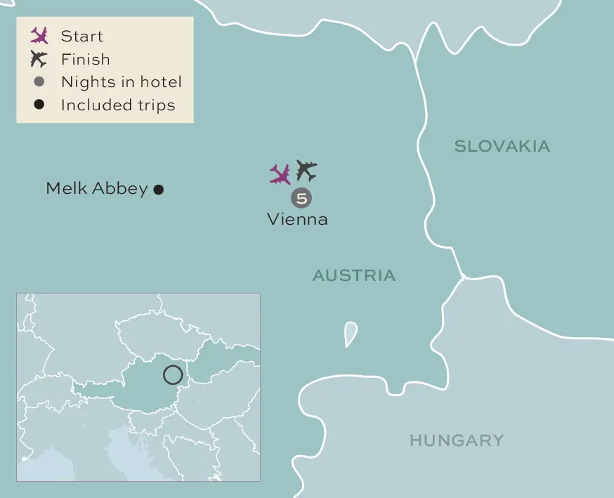 This evening, we will gather together and finish the day with a farewell dinner. Tonight, after dinner, you can choose to join the optional excursion of a classical concert, the perfect finish to an already excellent trip to Vienna.