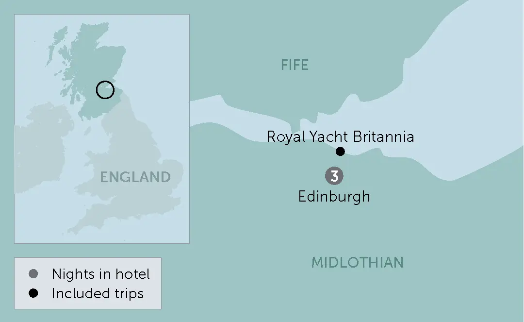 Meals included: BToday we’ll travel by public transport to Leith to step aboard the Royal Yacht Britannia, once the floating royal residence of Her Majesty the Queen. This magnificent ship hosted an array of state visits and official receptions and you’ll not only follow in the footsteps of members of the royal family, but renowned world leaders such as Nelson Mandela and Winston Churchill. On this visit, explore the State Dining Room, the Bridge and the Sun Lounge. The afternoon is free for you to explore Edinburgh on your own. End your short break with a farewell dinner in a local restaurant.