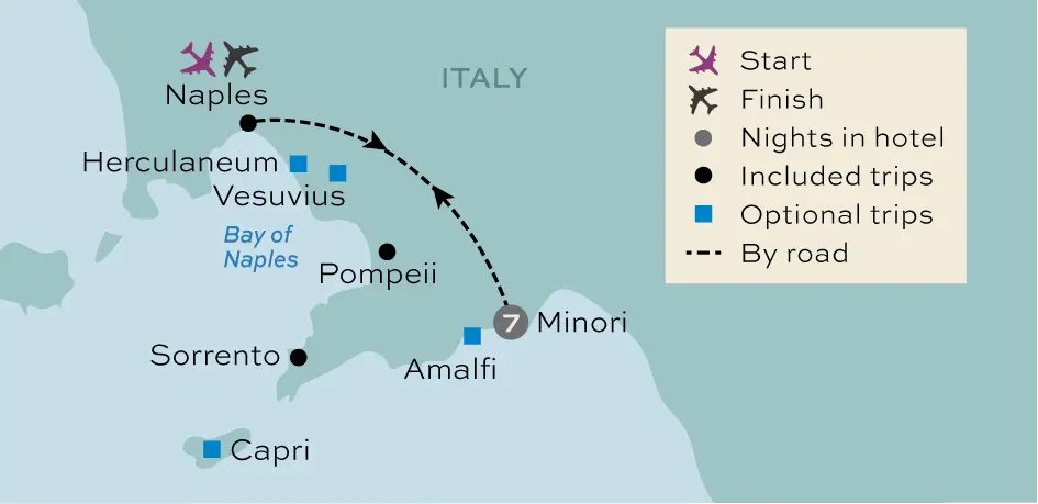 Discover the ruins of Pompeii and marvel at Mount Vesuvius from the comfort of your 4-star hotel in the beautiful Amalfi Coast. Winter is a fantastic time to explore the iconic sights of Italy, where the pleasant weather and lack of the crowds of summer, make it a delightful time to explore and discover. And with plenty of free time to explore on your terms, it all adds up to the most idyllic Italian adventure. Meanwhile if you prefer to make the most of every minute on tour, there's four popular excursions which include a trip to the chic island of Capri and a fantastic cookery class in Sorrento.