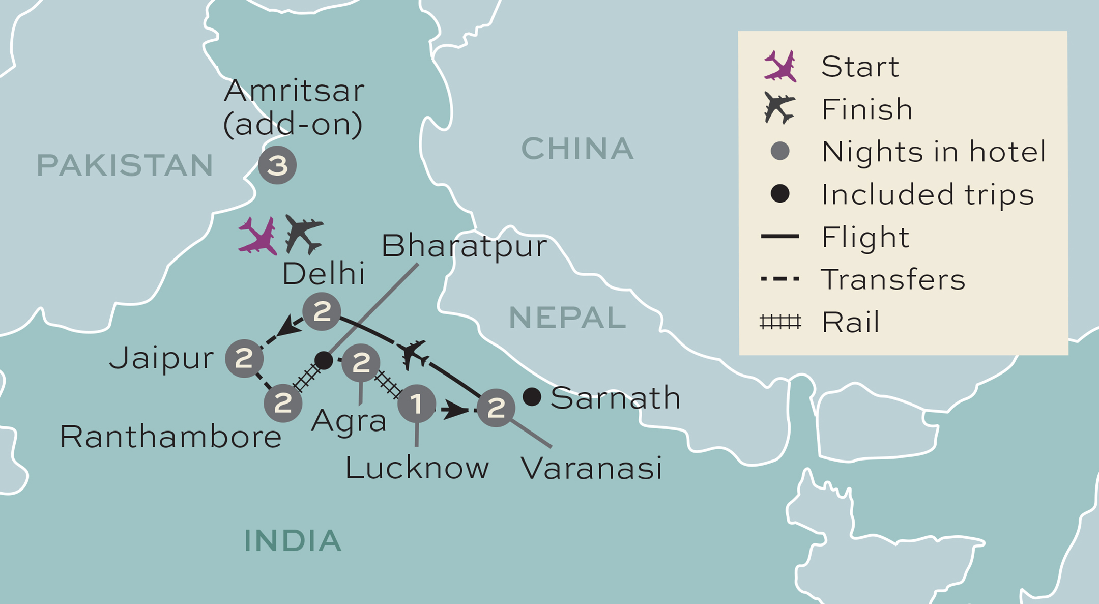 Enjoy an incredible journey through India’s very best cultural, religious and natural sites. Starting with the heady scents of Old Delhi’s vibrant bazaars and food stalls, we’ll move on to Jaipur and its mix of fortresses, palaces and busy street markets. In Ranthambore National Park we'll spend time looking out for the local wildlife, including the beautiful but elusive tiger. We then travel on to Agra, home of the Taj Mahal which we will visit, as well as spending time at Agra Fort - a truly impressive site to explore. There’s also time in Lucknow, which is well known for its gardens and monuments and during our visit we'll enjoy an immersive experience at an 8th generation fragrance house. We'll also enjoy a cultural fix with visits to temples and the holy city of Varanasi, where we’ll sail along the Ganges at dawn – a real wow moment on this tour. We'll then head to Amritsar for a two-night stay. A guided tour of the simply stunning Golden Temple is included.