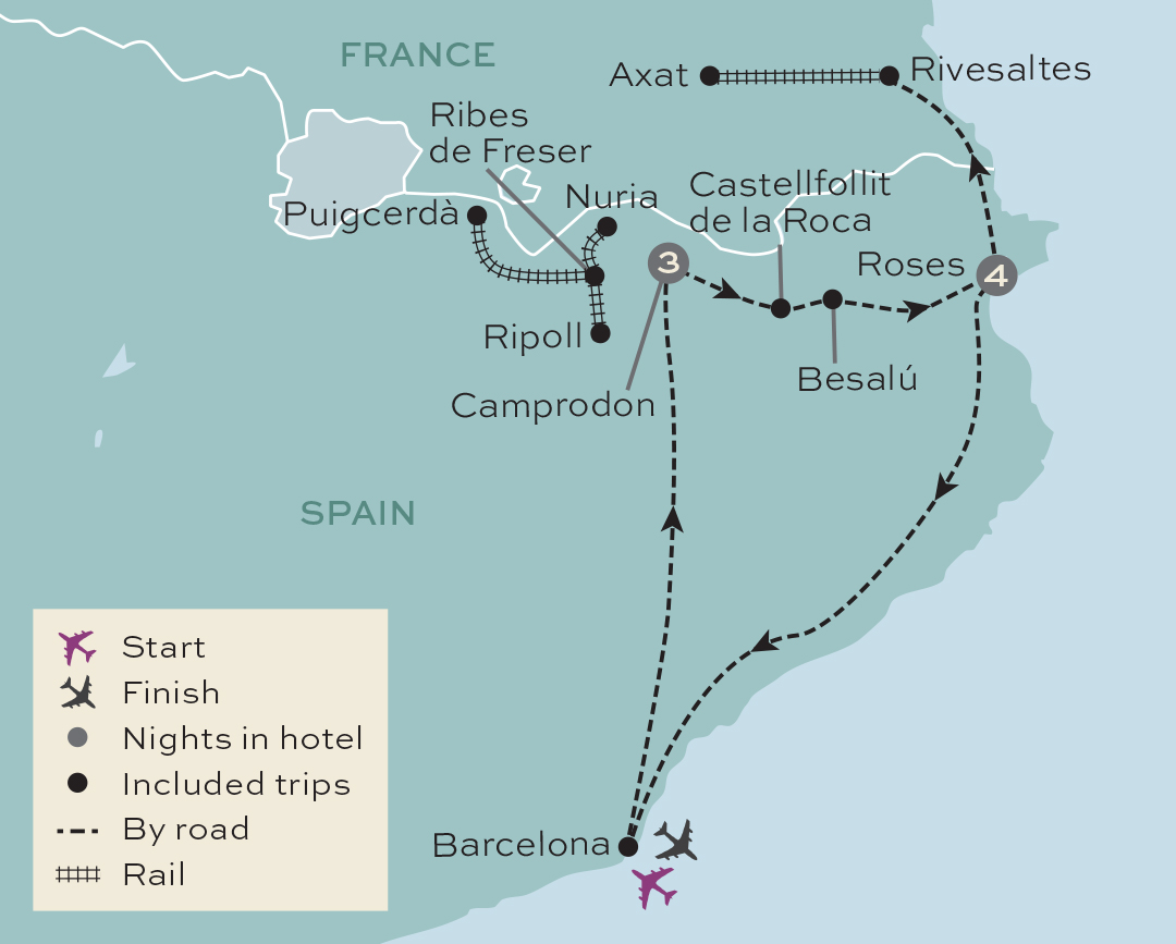 This morning we'll drive the short distance to the town of Ribes de Freser, where our journey to the sanctuary of Núria begins. This spiritual oasis is accessible only by train, so we'll step aboard the rack railway for our ascent up the mountain. Winding our way through this beautiful area, we'll take in spectacular views and get a real sense of the enormity of the valley. There will be time to admire the sanctuary, take a stroll and perhaps have a bite to eat, before we head back down the mountain and return to Camprodon.